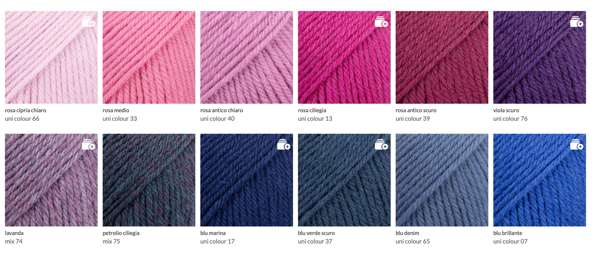 Oltre ai colori proposti, è possibile richiederlo in altre varianti cromatiche (in base alla disponibilità dei nostri filati).