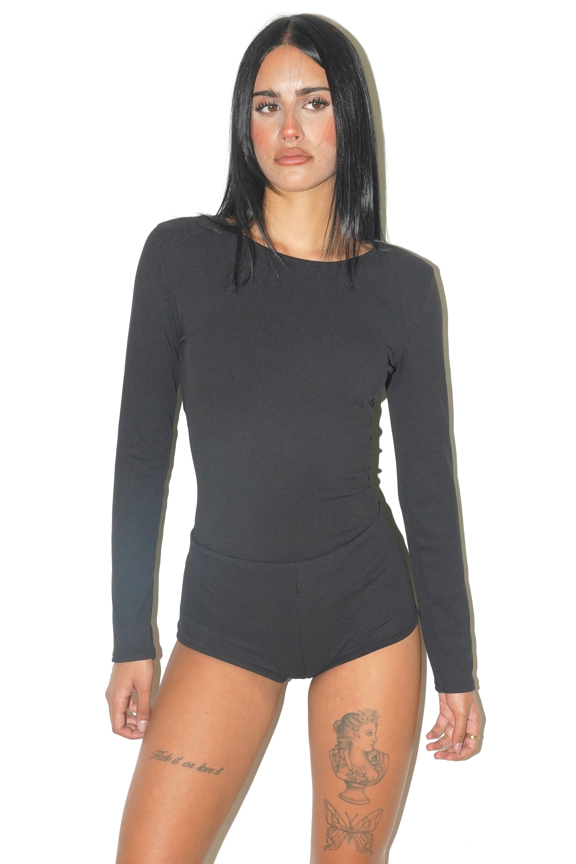 Il tessuto morbido ed elasticizzato avvolge delicatamente la silhouette, valorizzandola senza mai risultare scomodo, rendendo il coordinato facile da abbinare a qualsiasi look